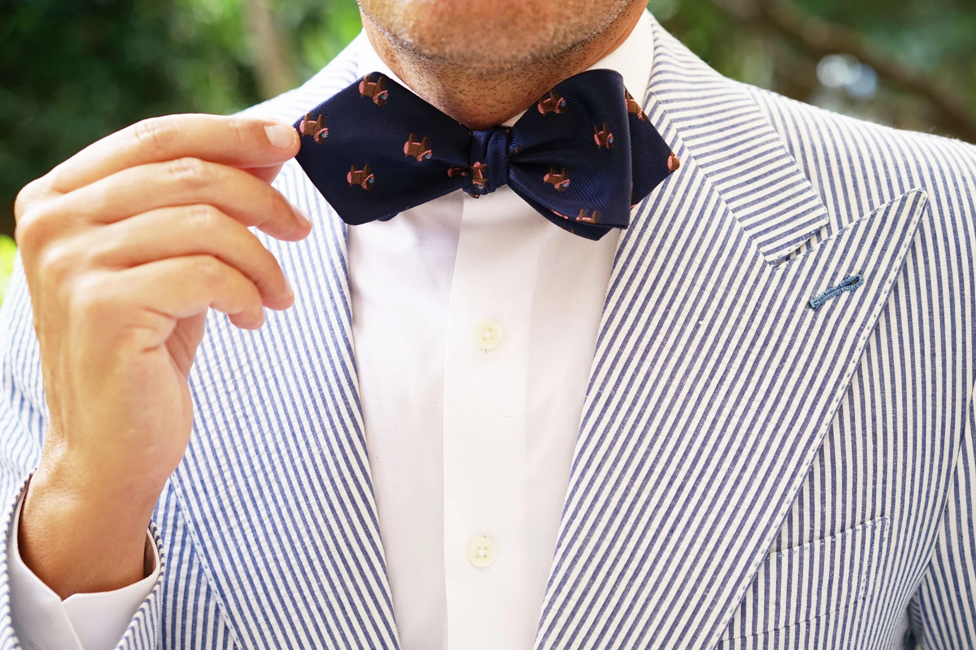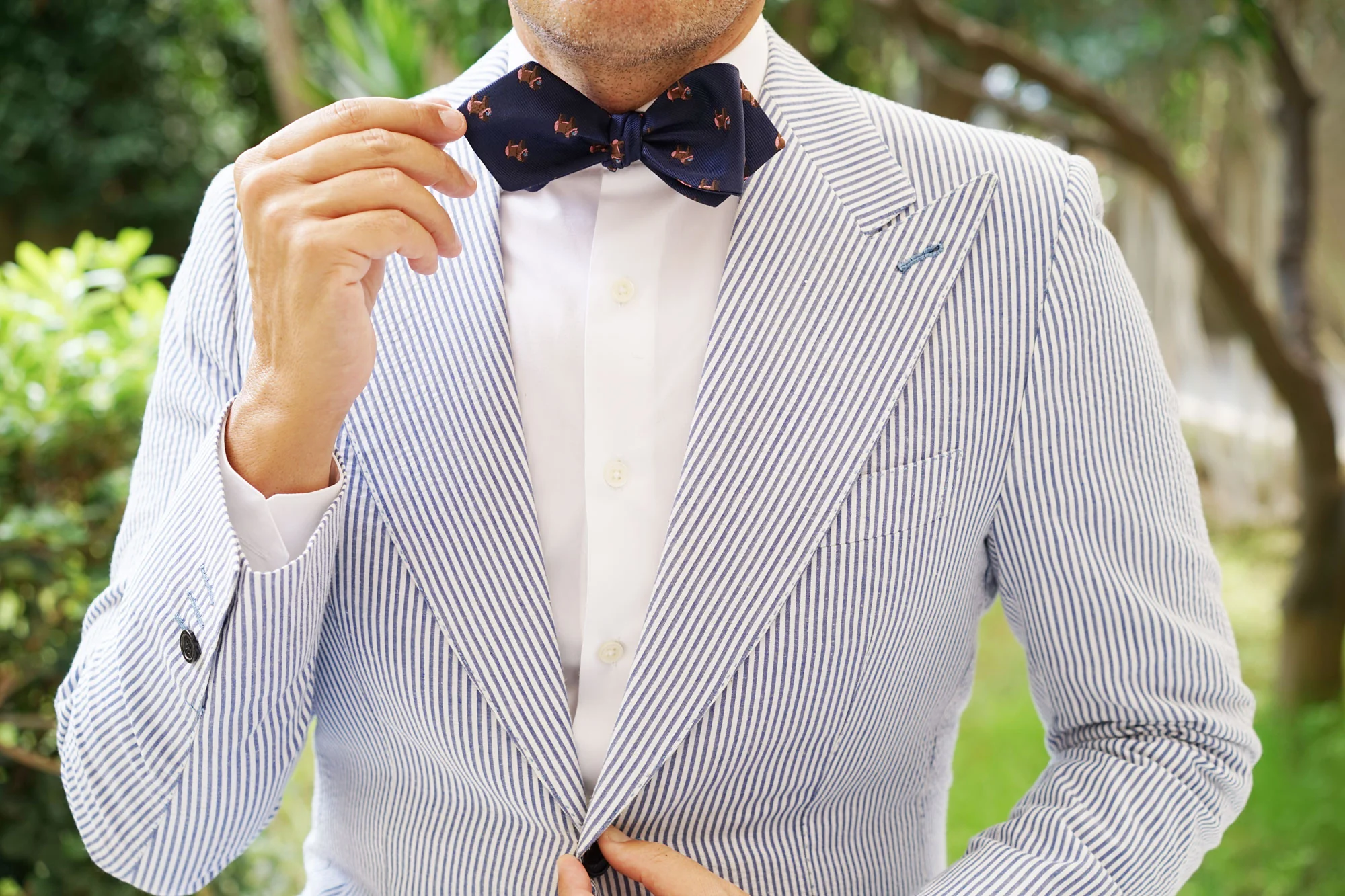 The elder brother at OTAA justifies the Baboon Diamond Bow Ties Self-Tie – “If we’re going to do the Animal Kingdom, we’re going to include every animal, especially baboons." Our hand-sewn method allows the Baboon Diamond Self-Tie Bow to exhibit extraordinary detail as there is little machinery used in the crafting of this tie. Touches such as these make all the difference. Baboons are extremely crafty, intelligent and highly astute. Typically, baboons rise by about 8.00am, have a mutual grooming session and then start looking for food.  Inspired by the intelligent mammal, this Baboon Diamond Bow Ties Self-Tie exudes sophistication and is hand cut and sewn on a classic navy backing. Designed exclusively by The Brothers at OTAA.