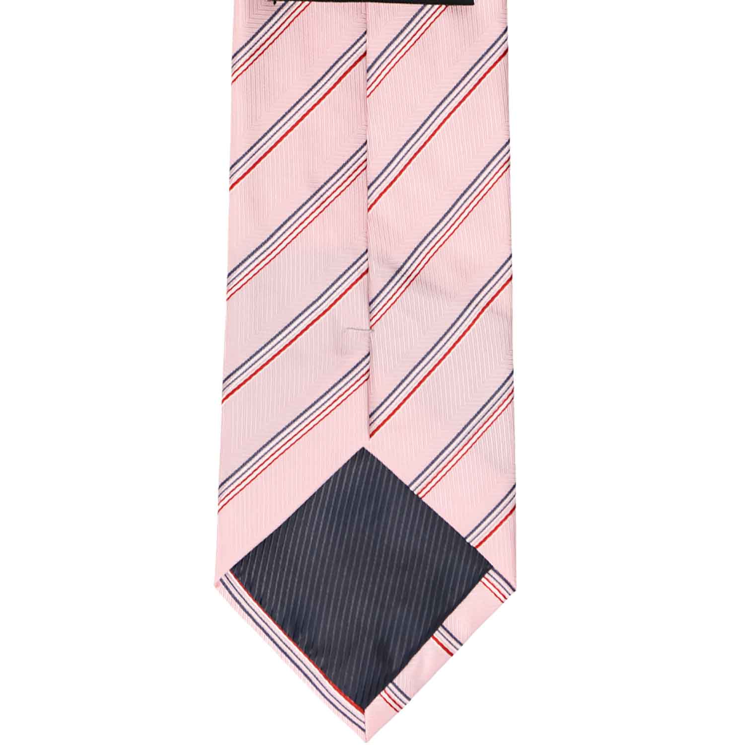 Pretty as a flower! This pale pink striped tie is a great choice for spring and summer. Easy to match to any pastel colored oxford. This men's necktie features a woven pencil stripe pattern in pink and blue. Wear it with a navy blue suit for a dashing Easter look. A matching pocket square is included with this tie for your more formal occasions.
