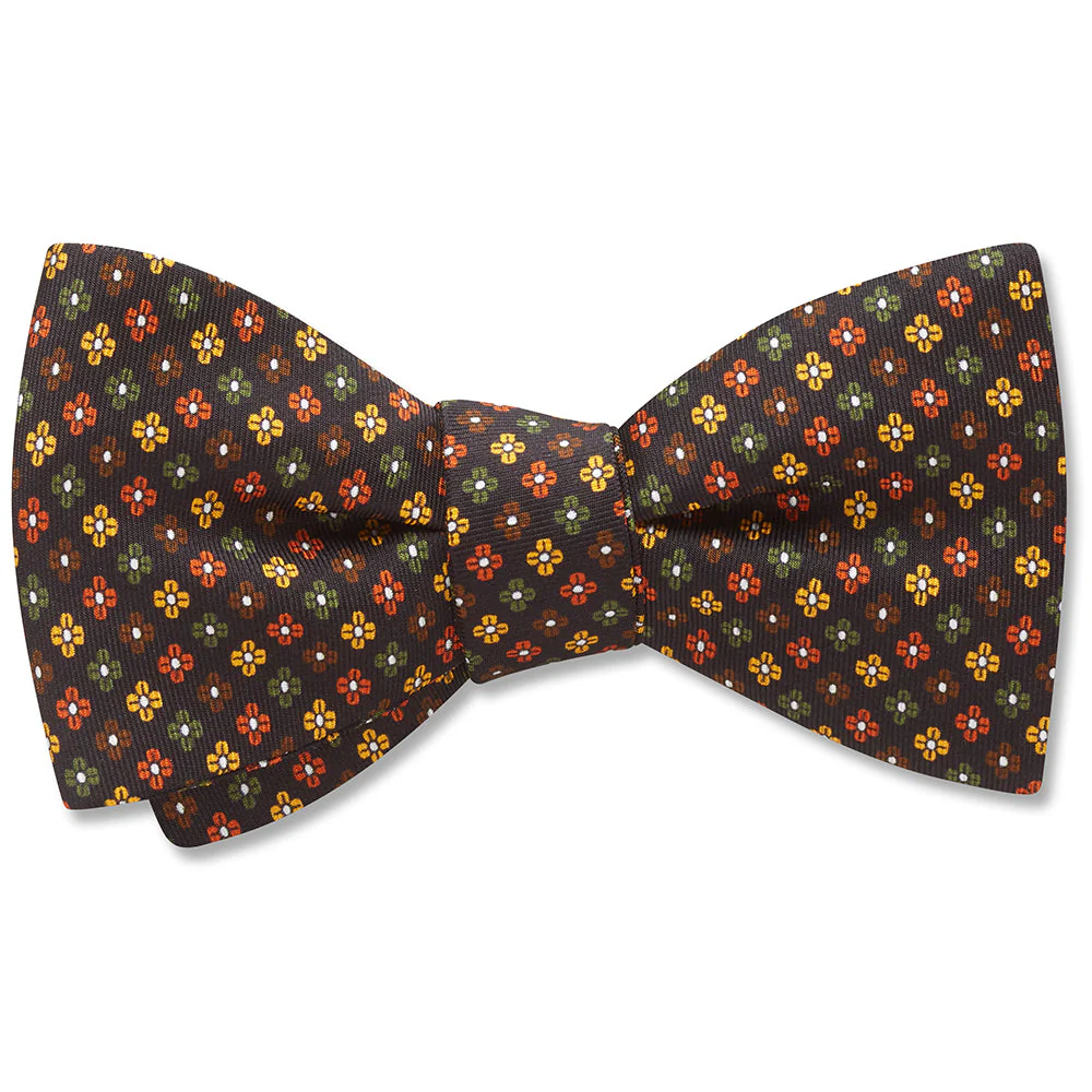 Petite blossoms in a variety of colors, are aligned neatly on black silk twill in this understated, and oh-so-appealing, floral design.