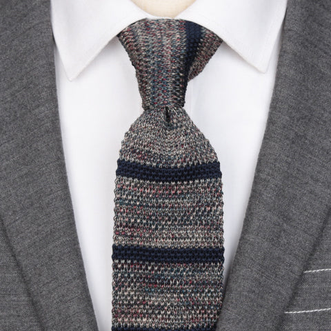 Stand out from the crowd and add texture to your outfit with this striped knitted tie. The beautiful knitted material resists wrinkles well which makes it a perfect tie to travel with. This knitted tie is perfect for cold weather and works as an excellent conversation starter. Wear with casual or business casual attire.