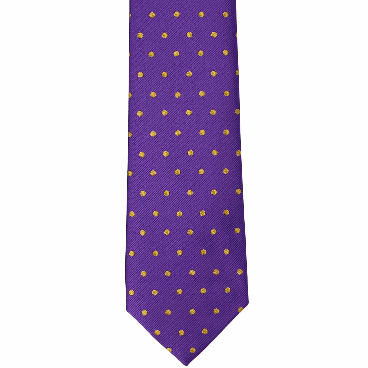 Ready to step up your fashion game? Look no further than this dark purple and gold polka dot tie! This versatile accessory is perfect for any occasion—whether you're hitting the office, cheering on your team at game day or marching in a Mardi Gras parade. Wherever you're heading, the polka dots are just the right size to add a touch of fun to your look without overwhelming. When you're wearing a jacket, don't forget to add the matching pocket square (sold separately) for those dressier moments. And hey, if neckties aren't your thing, this pattern is also available in a bow tie!