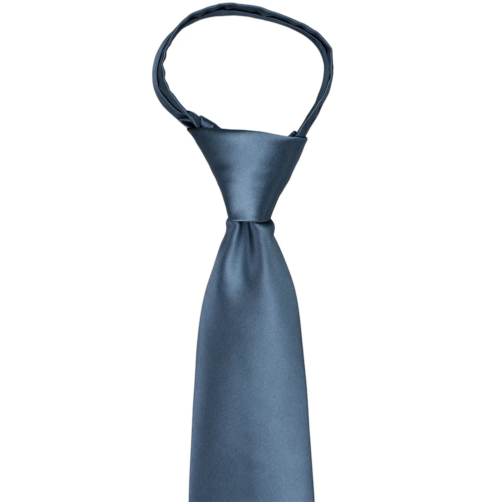 No need to tie this dusty blue tie. It already is thanks to its pre-tied knot. Simply unzip it, slip it over your head and zip back up to your neck size. (If you’re new to zipper ties, take a closer look at the instructions below.) This tie is suited for formal occasions like weddings and Prom. The subdued blue color pairs well with navy blue or gray groomsmen suits.