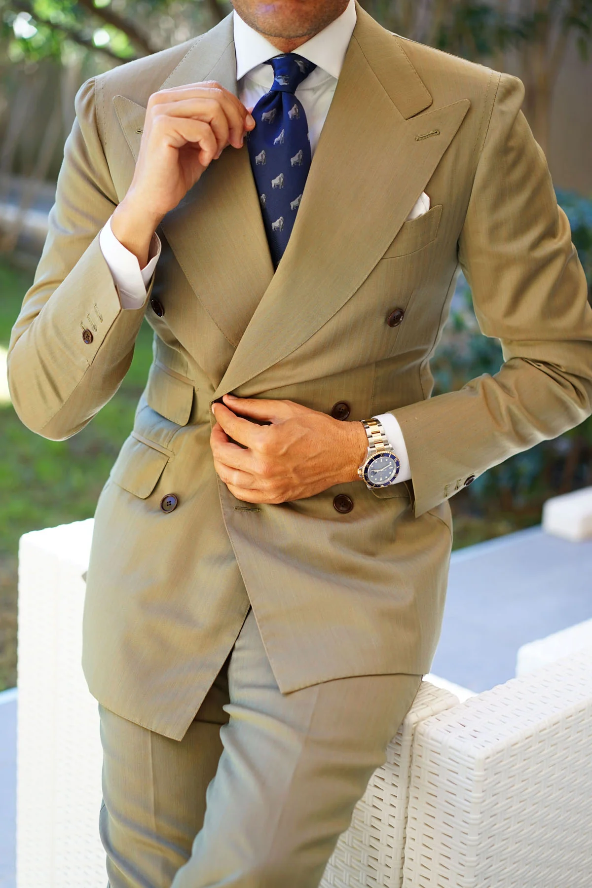 Our hand-sewn method allows the Gorilla Tie to capture extraordinary detail as there is little machinery used in the crafting of this tie. Touches such as these make all the difference. Gorillas live in troops, which are made of one adult male, multiple adult females and their offspring. The male is the mediator who makes the decisions and resolves conflict. Inspired by the intelligent species, our Gorilla Necktie exudes sophistication and is hand cut and sewn on a classic navy backing. Designed exclusively by The Brothers at OTAA.
