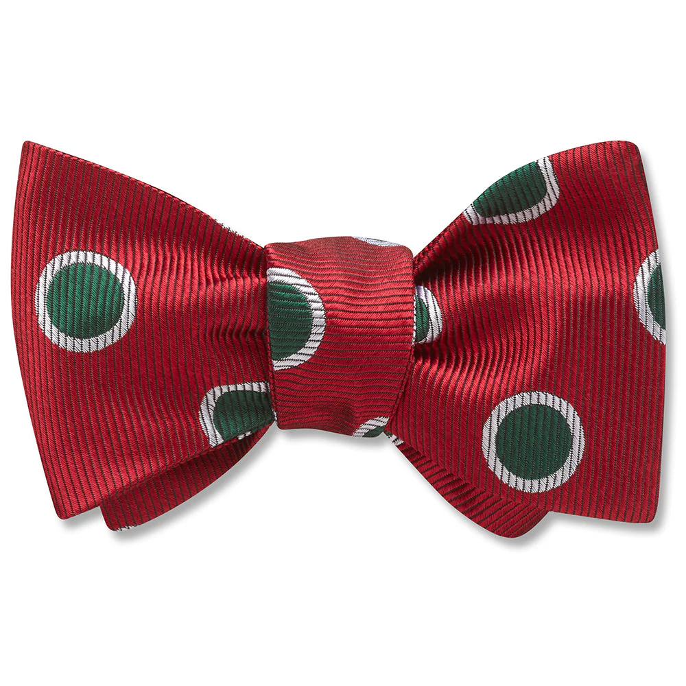 Even if don't consider yourself a fan of polka dots, it's hard not to find these big silver-rimmed green dots woven into dark red silk totally appealing - for the holidays and beyond.