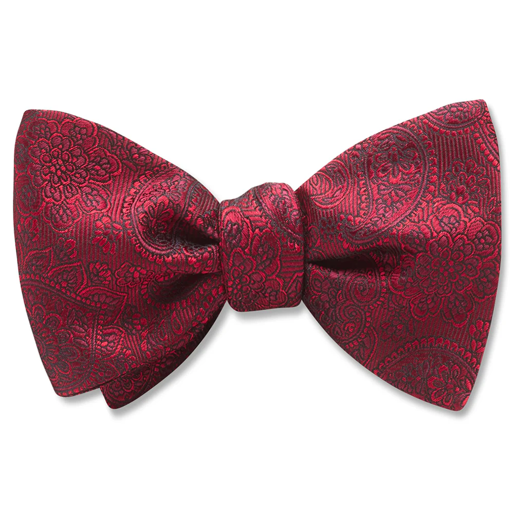 This beautiful burgundy red woven silk filled with subtle paisley and floral patterns is an ideal choice for formal wear when you're ready for a change from basic black.
