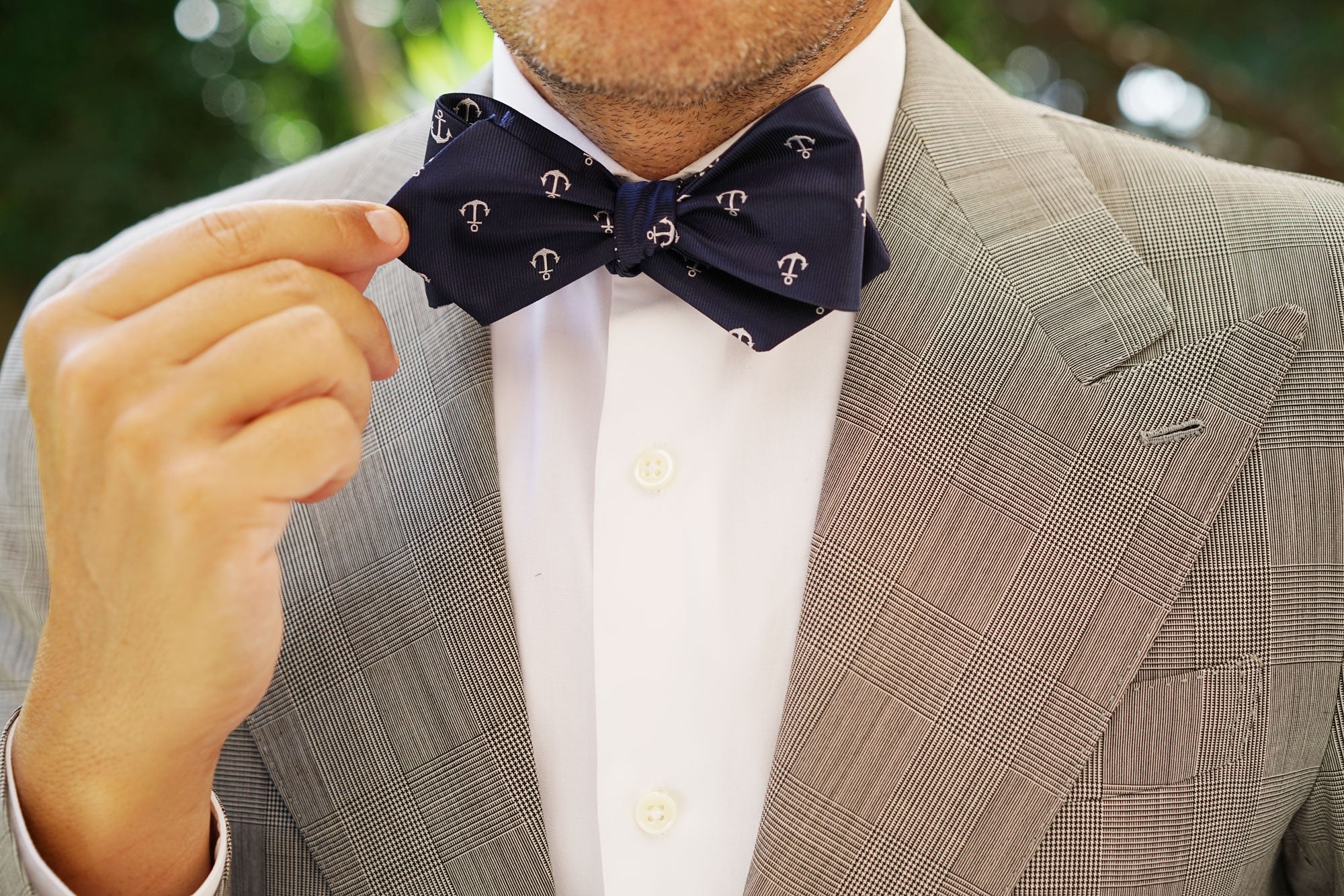 Natbeck Diamond Tip Self Tie Bow Tie Navy Blue Anchor suitable for nautical weddings